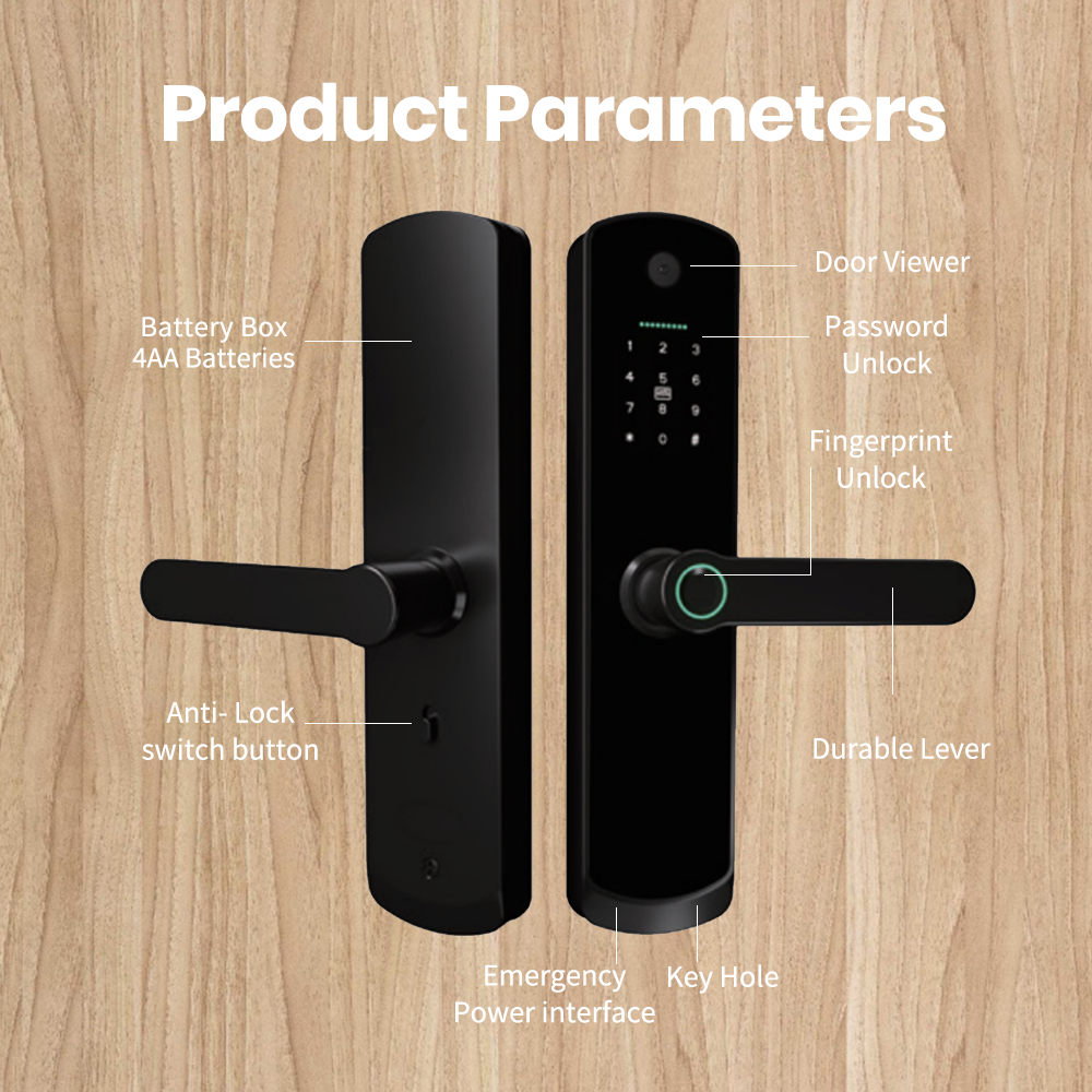 LPL006 High Security Quality Digital New Password Fingerprint Smart Panel Handle Door Lock With Wifi Tuya App