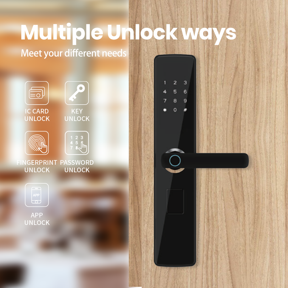 P01 Home Office Hotel Use Safety Security Door Lock Handle Lock Password Fingerprint Remote Wifi Unlock Smart Lock