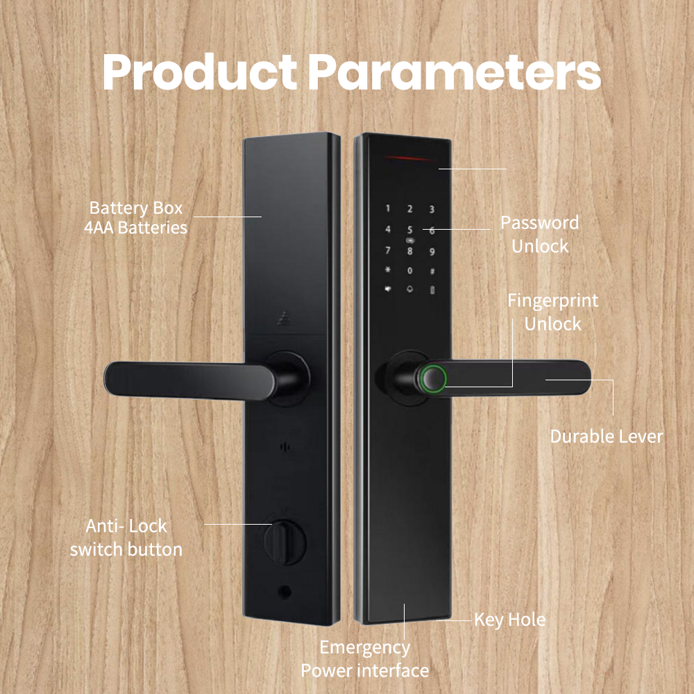 - Function: Fingerprint + password + card + Tuya APP + key